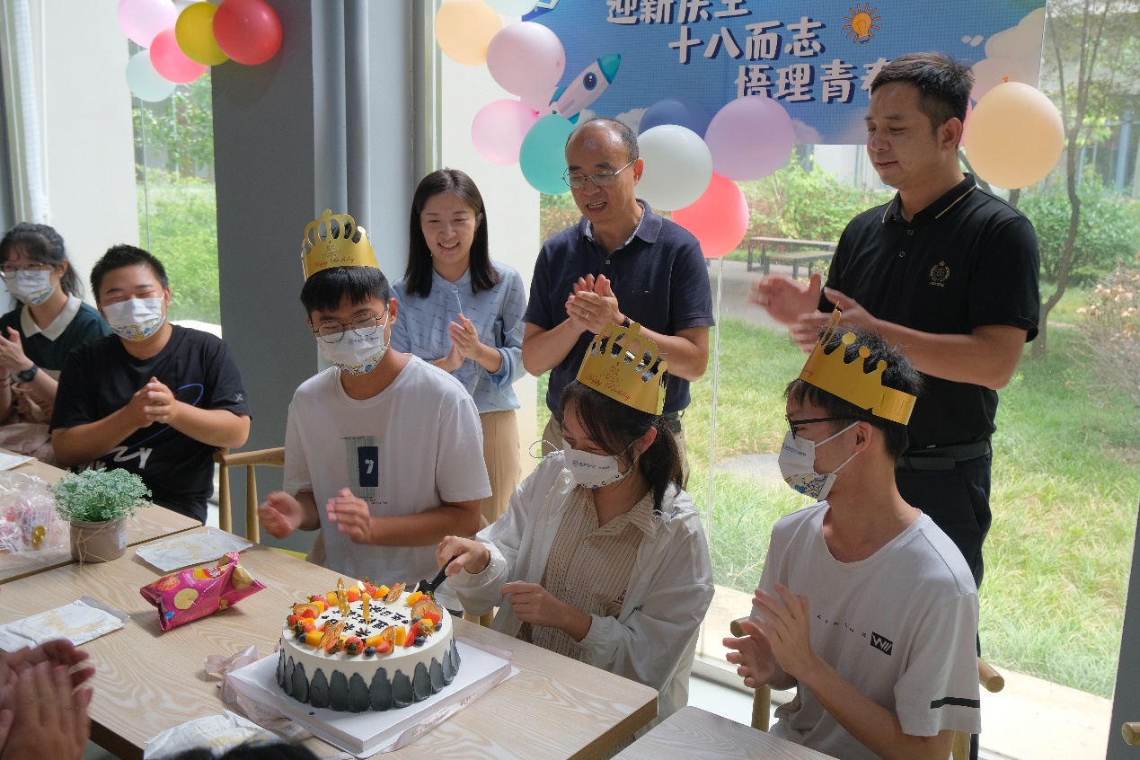 在师生之家,学院领导和老师一起为9月份生日的新生庆生,不仅有氛围感满满的生日会装饰,更有专属于“未来的明理精工英才”蛋糕。老师们的殷切嘱托和同学们温馨祝福,为小寿星们点亮了十八岁的物理新征程,在欢快的生日歌中,学生感受到了来自学院家一样的关心和温暖,同时许下了对未来四年成长发展的美好愿望。