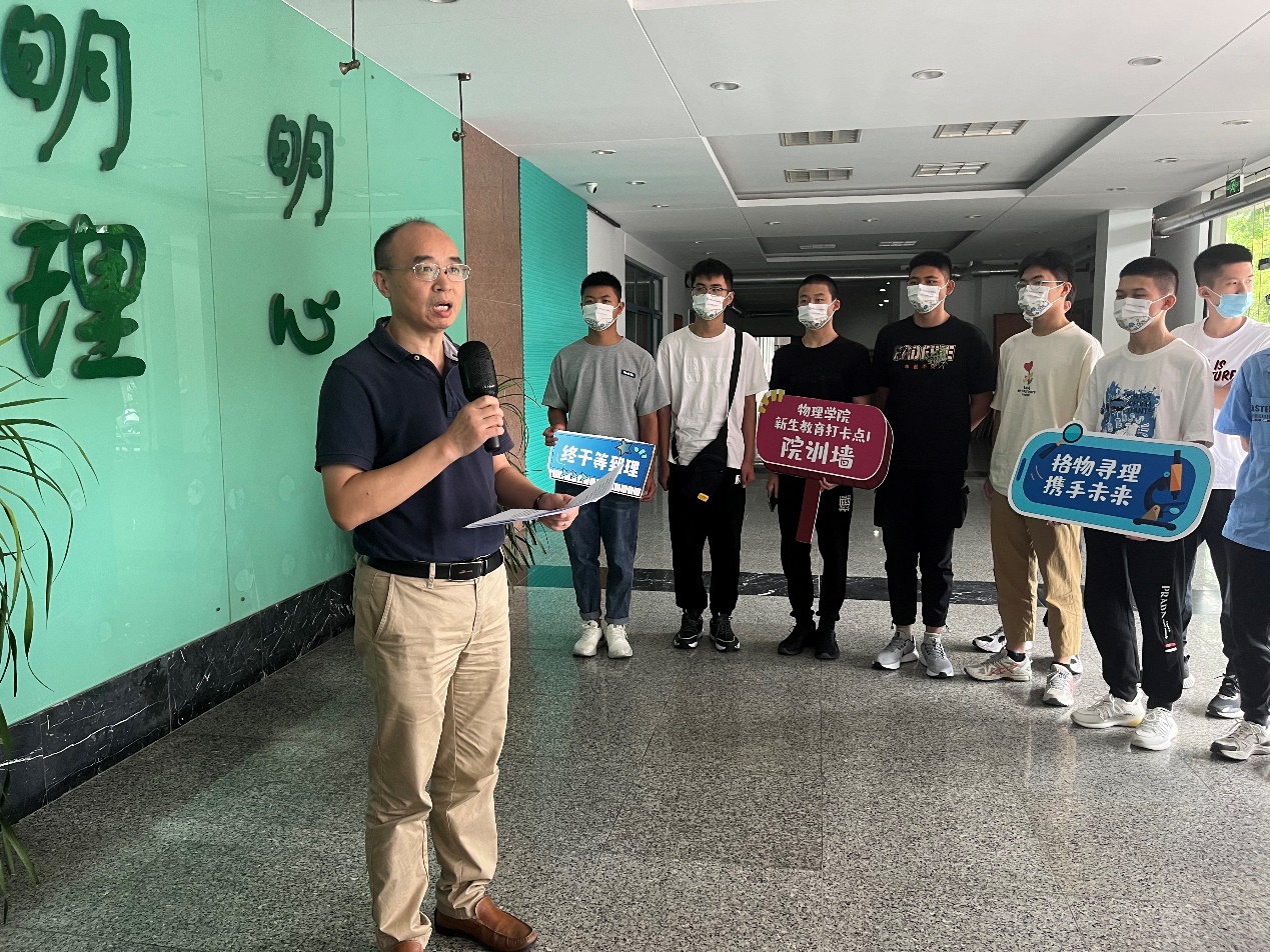 在打卡点师生之家,党委书记陈修文从南航的行业背景和学科发展方向出发,为新生们讲解了学院愿景与使命,强调学院发展必须充分立足学校三航背景优势,坚持面向航空航天的发展方向,走有特色的理工融合发展之路,打造特色物理学科,培养明理精工英才。陈书记的一番话,让同学们对未来的发展方向有了初步的认识和了解。