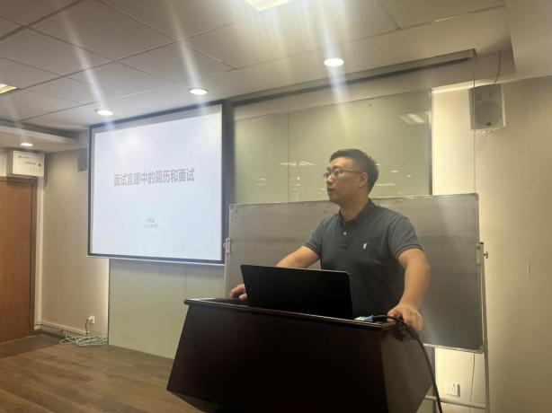 英田光学人力资源总监刘秋庭做“职”点迷津面试技巧培训讲座,他用专业的思路帮助同学们解读求职过程中的注意事项,详细讲解常见的面试问题所考察的维度,包括自我认知、独立性、抗压性等,帮助学生掌握STAR法则,引导学生系统梳理自身实践经历,认清自身优势,提升求职自信。