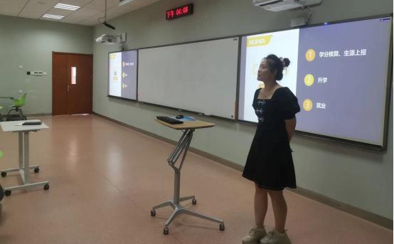 秋招形势讲解会中,辅导员胡诗帆、邢临川结合疫情后显性对目前就业形势做分析,将秋招的单位类型和单位层次进行了系统梳理和针对性介绍,鼓励学生国防就业,呼吁同学们尽早锁定目标、深入秋招市场去更多地了解单位的人才需求,为自己的职业生涯规划积累经验。