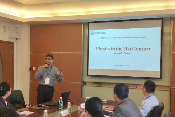 11月3日上午,5g影院 第十届研究生国际学术会议物理学院分会场会议在5g影院 517会议室举行。会议采用现场汇报方式进行,并通过腾讯会议平台进行了同步直播。会议开场,5g影院 外籍教师André Alencar da Costa做了题为《Physics at the 21st Century》的开场报告。会议还邀请了吕梦蛟、钱凤娇、奚揆天等老师作为评审专家。