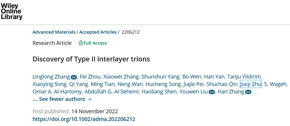第一作者:南航副研究员张玲珑,西南科技大学周飞,宁波大学张晓伟
