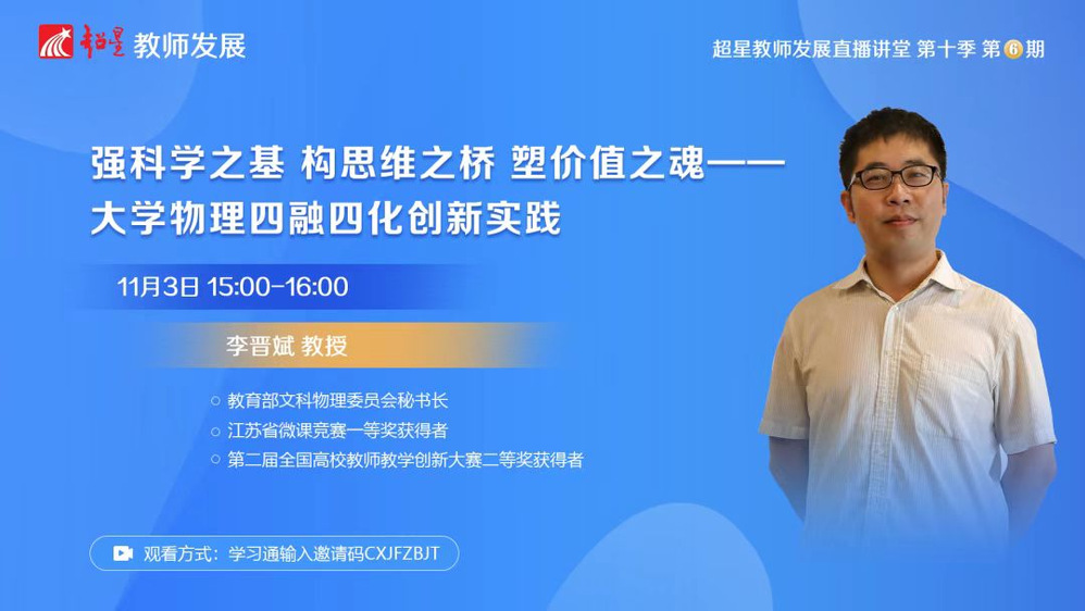 本次活动除了现场报告之外,李晋斌教授还通过超星学习平台分享了《强科学之基构思维之桥塑价值之魂——大学物理四融四化创新实践》的报告,他指出教学竞赛是提高教学质量的重要手段,有利于锻炼青年教师的教学能力,提升青年教师的教学水平。他希望青年教师能够在教学实践中积极探索、创新进取。