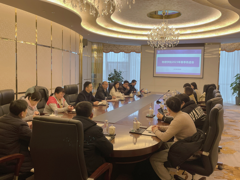 副院长李晋斌、徐飞,副书记欧珊分别对照学院考核的重点,围绕学院教学工作、科研工作和学生工作的亮点工作,就当前工作情况、未来工作规划、具体工作举措等作了专题汇报;各系(中心)主任从学院发展大局出发就各系(中心)的工作举措作了交流发言。重点讨论了卓越教育教学工程八大计划、科学研究与学术交流提升方案、项目申报与国际合作发展举措、优良学风建设与涵养明理精工英才途径、学院制度化建设和治理能力提升等工作。院长刘友文围绕学院历史与现状、教学与科研、考核和引导,指出了新征程、新使命、新思路下的学院发展新途径,从学院定位、人才培养、师资队伍、科学研究、机遇使命等方面,对照学院年度考核结果、“十四五”重点指标完成情况,就学院当下面临的形势及存在的问题进行了分析,提出了学院在物理学前沿领域、交叉学科领域、物理空间规划发展、配套政策制定实施等方面的发展目标与工作展望。