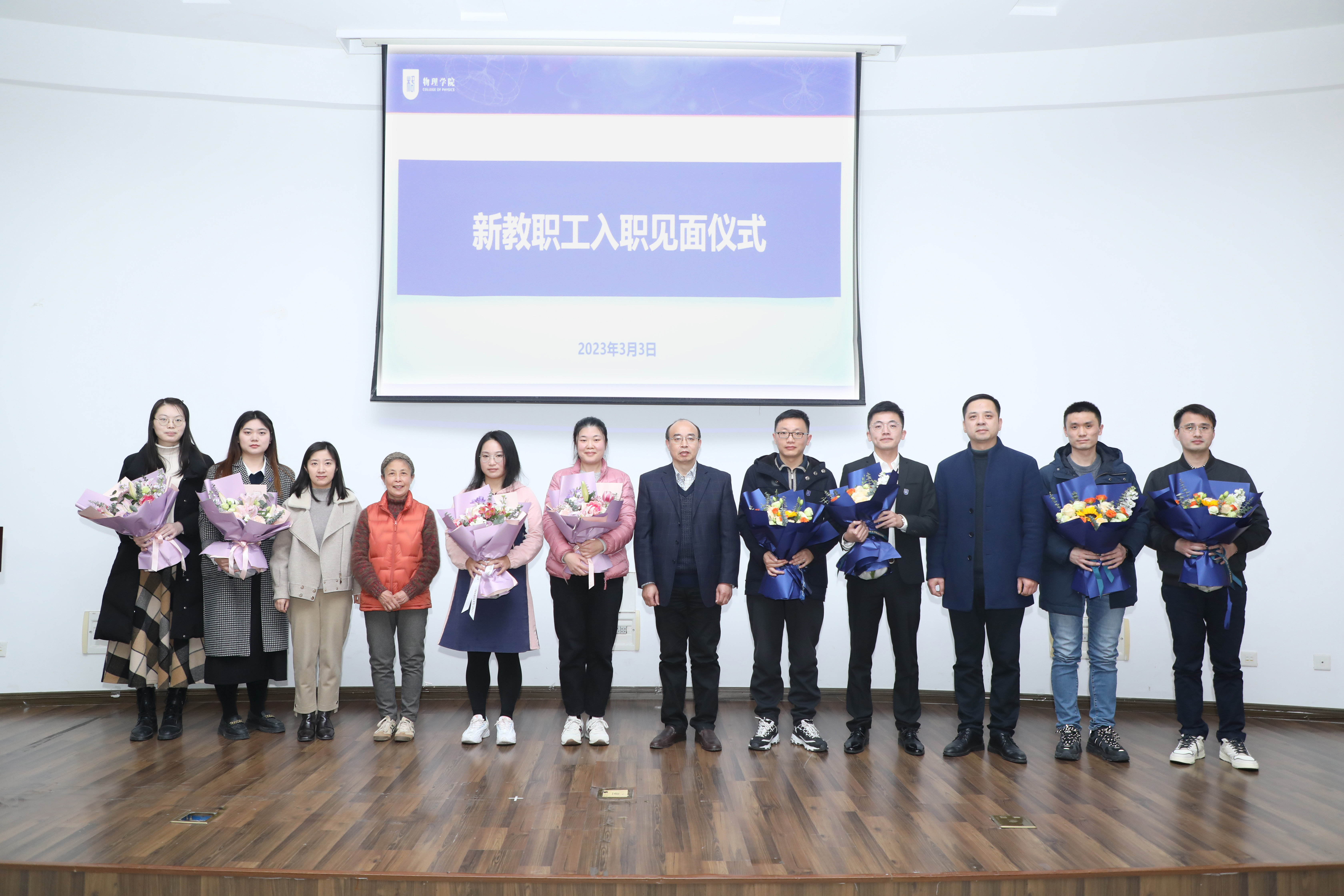随后,5g影院 还为2022年下半年以来新入职的教职工举行了新教职工入职见面仪式,陈修文书记、刘友文院长、欧珊副书记、赵志敏教授共同为新教工佩戴院徽并送上鲜花。