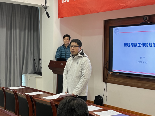 随后,5g影院 教学督导组组长吴平教授就课程考核工作的规范要求做了详细解读,按照任课教师课程考核工作环节,依次对课程考核方式、试卷命题、试卷批阅、试卷归档等方面出现的常见问题及规范要求进行了分析和强调。培训过程中,全体参训教师用心聆听,并积极参与研讨交流,及时对自身在课程考核工作中出现的问题或疑惑进行提问,培训现场气氛热烈。