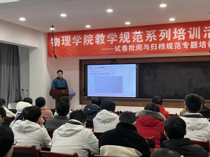李晋斌副院长首先传达了《关于开展本科教学规范交叉检查“回头看”工作的通知》文件的精神,对学院开展“2021年度课程考试考查归档材料专项检查”做了简要的部署安排。他指出,希望全院教师能够充分利用此次教学规范专题培训活动,全面了解掌握试卷批阅、归档管理的制度规范,并严格依据专项检查通知要求开展自查行动,强化问题导向,坚持举一反三,全面梳理和改进自身在试卷批阅、归档方面存在的问题与不足,从而为迎接新一轮本科教育教学审核评估奠定坚实基础。