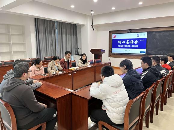 召开毕业生润心座谈会,邀请教工党支部党员骨干教师与考研失利学生、就业困难学生进行座谈交流,关心学生面临的实际困难并给予针对性的指导和帮扶。党委副书记欧珊、副院长李晋斌、党员教师杜朝玲、钱凤娇以及2023届毕业生代表参加。