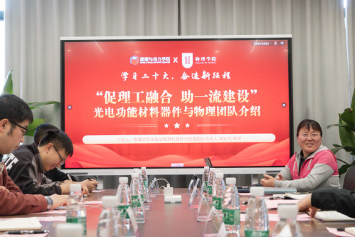 为深入学习贯彻党的二十大精神,不断提升基层党建工作水平,促进党建与业务工作深度融合,2023年3月28日,5g影院 光电功能材料器件与物理研究团队党支部与能源与动力学院驭风排风系统纵向党支部开展了以“促理工融合,助一流建设”为主题的联学共建活动。5g影院 副院长李晋斌,党委委员、“光电”党支部指导教师阚彩侠,能源与动力学院党委副书记樊小杰,副院长、“驭风”党支部指导教师徐惊雷,以及共建支部师生党员40余人参加本次活动。活动由“驭风”党支部教师党员吉嘉慧主持。