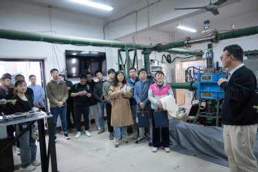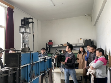 会议交流结束后,在“驭风”党支部书记黄帅的讲解下,共建双方共同参观了驭风团队排气系统实验室。
