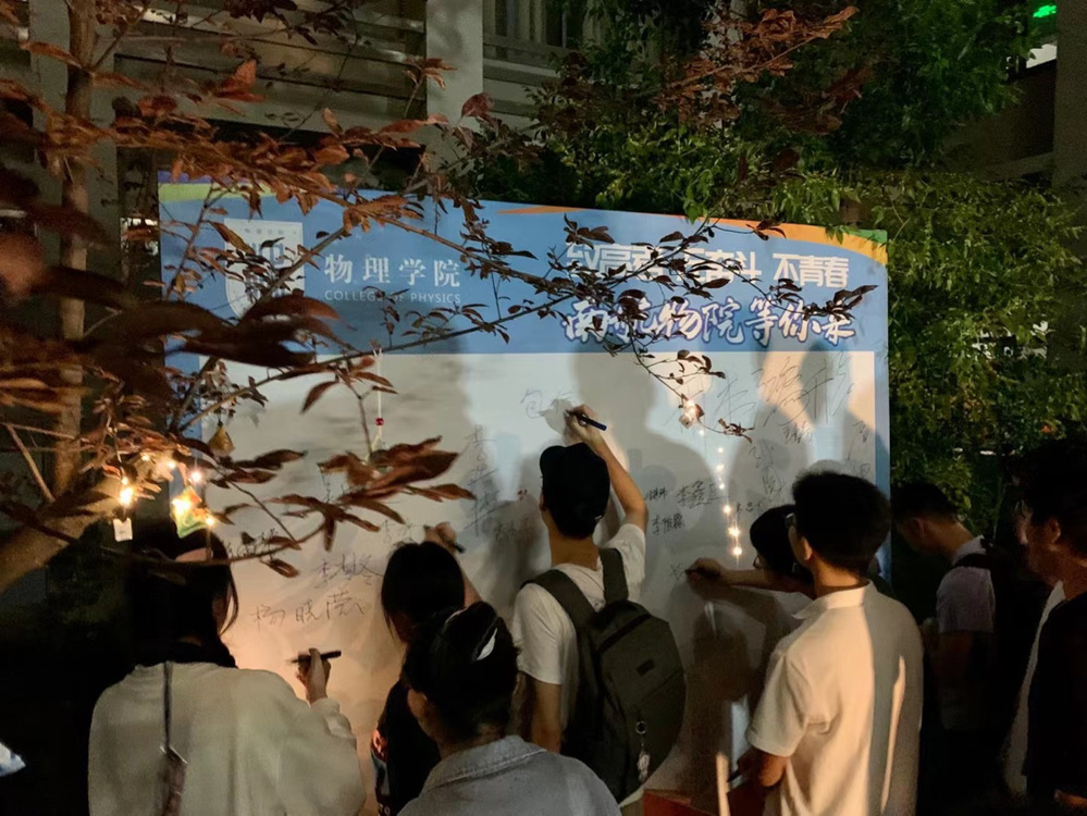 活动结束后,2022级全体学生在主题大喷上签下自己的姓名,为2023高考生送上自己的祝福,并合影留念。整场活动风趣幽默,引人入胜,不少同学表示,像这种形式新颖、氛围温馨的茶话会更容易增进感情,能在欢声笑语中交流、学习,别有一番滋味。