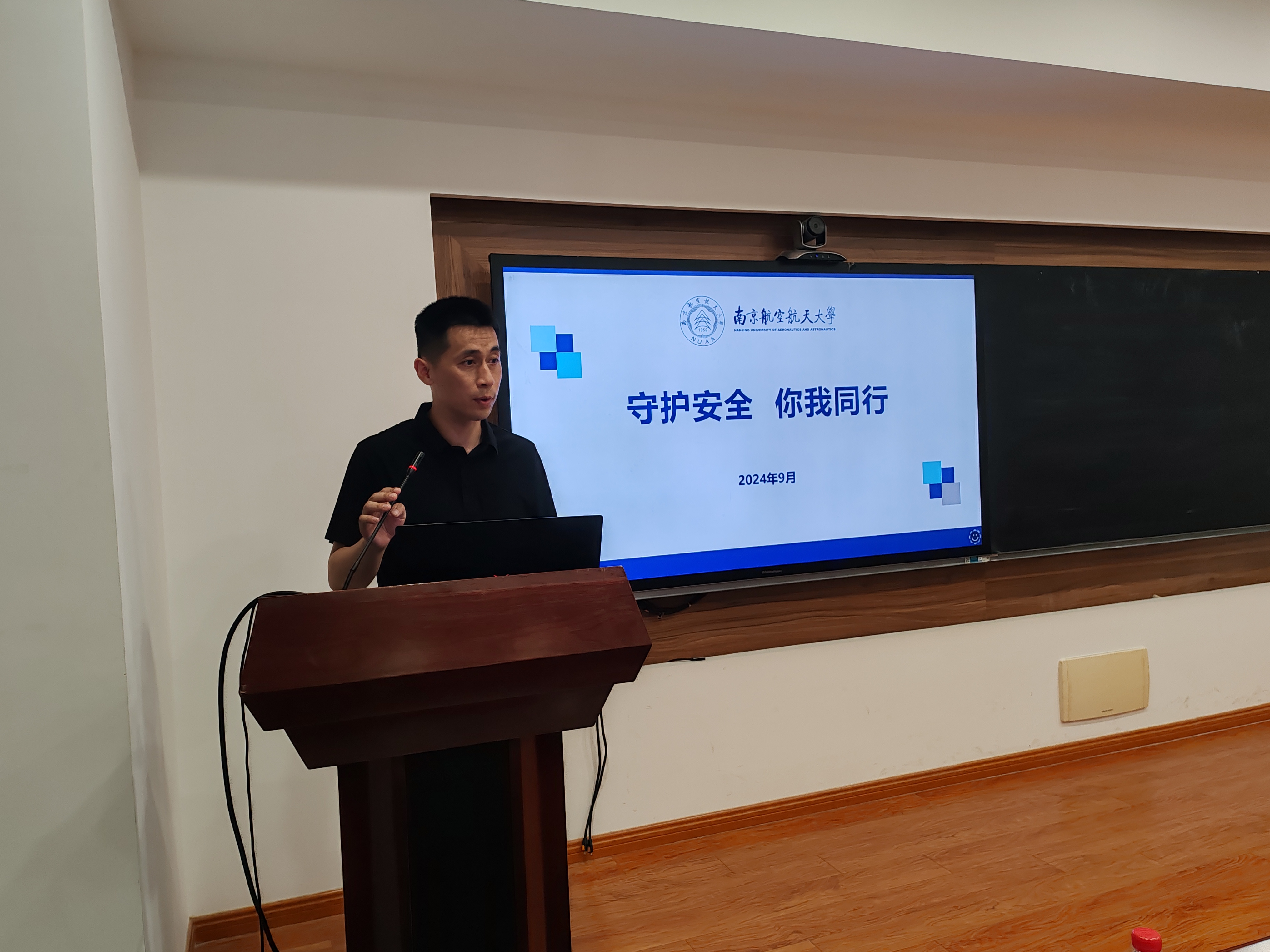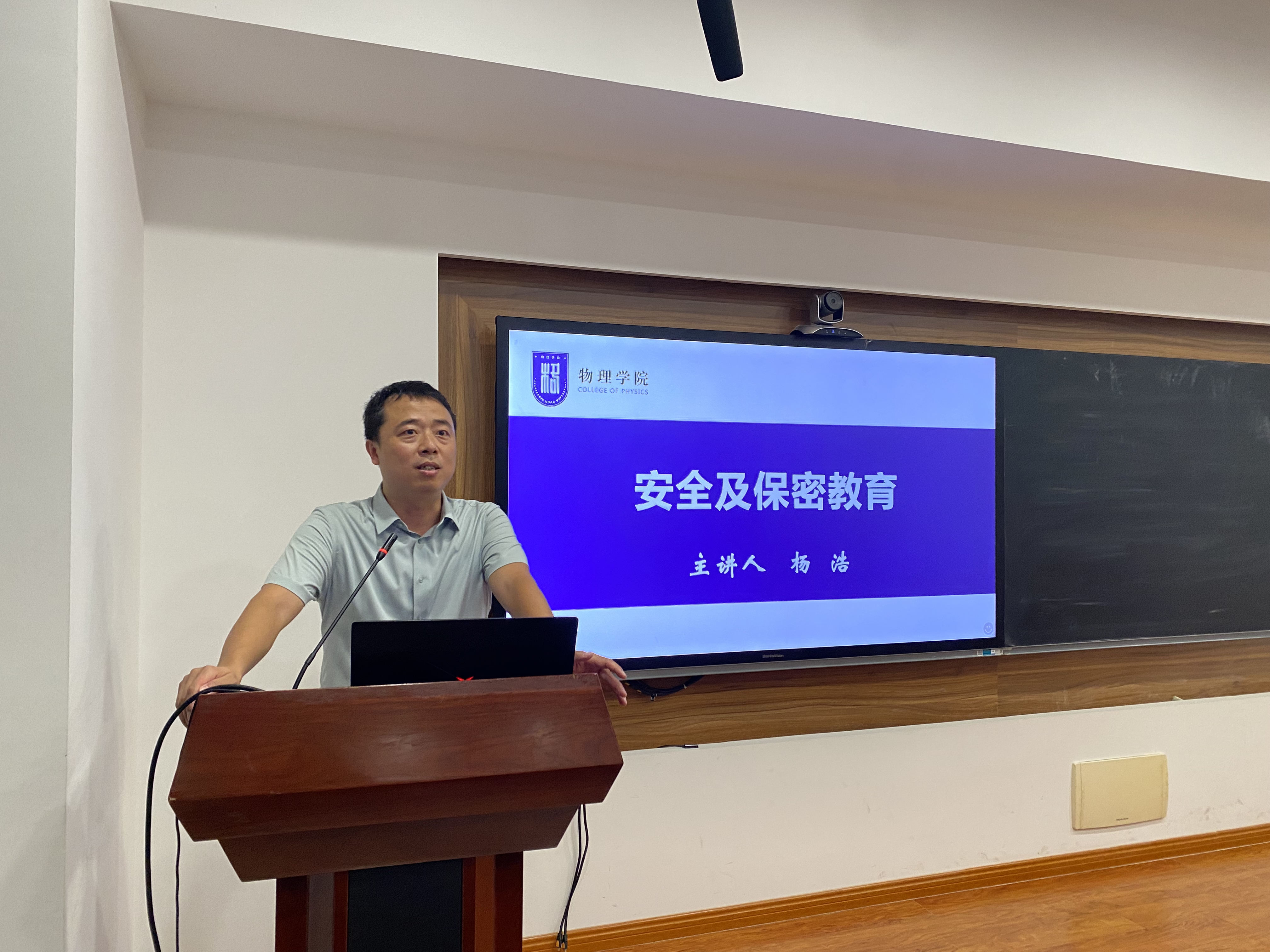 副院长杨浩通过系统的理论知识和大量的鲜活实例,从 “事故案例与原因”、“安全管理基本原理”、“安全风险”、“安全提示”、“保密义务”“保密须知”“保密提醒”等方面对实验室中的安全管理以及研究生阶段的保密要点进行了全面细致的讲授,给大家了一堂印象深刻、发人深省的安全及保密教育课。辅导员梁欢围绕校园安全提醒、校园安全服务、校园安全应急三个方面提醒同学们要时刻树牢安全意识、紧绷安全之弦。现场的同学纷纷表示受益匪浅。
