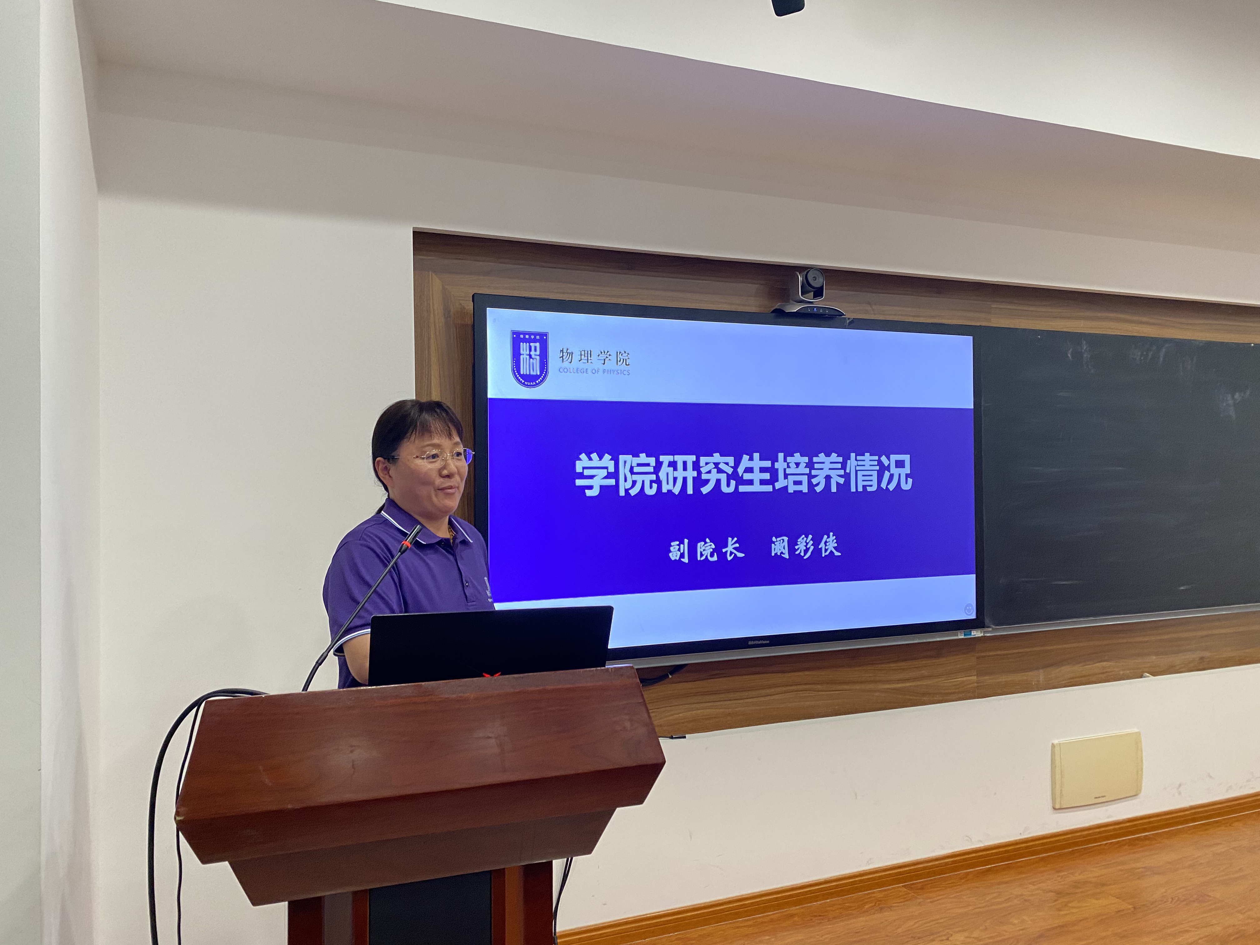 副院长阚彩侠向学院95名研究生新生表达了祝贺和欢迎,希望同学们尽快适应研究生阶段的学习生活,首先要学会独立思考、主动沟通,独立自主的学习探索是基础,学会团结包容,和导师、同学交流分享、共同攻关是关键,其次做基础学科研究,既要有国际视野,还要有交叉思维,需要开阔眼界、关注国际前沿动态,多和应用研究交叉,不断探索创新,最后要劳逸结合,强健的体魄是做好科研的基础。