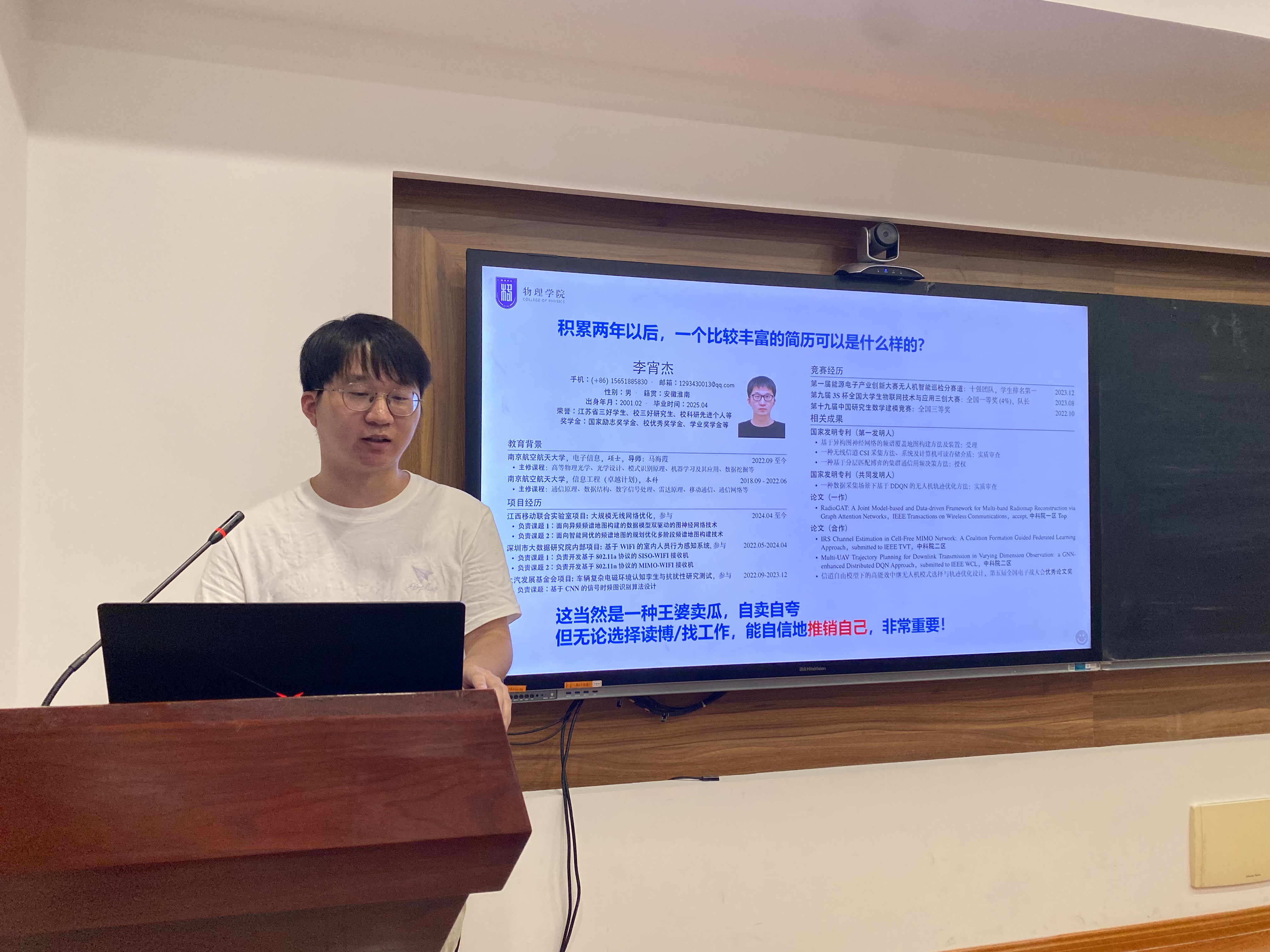 在研究生朋辈经验交流环节,物理学专业2023级博士生、我校“引航计划”第四期成员李栋面向新生作经验交流分享,结合自己的求学经历向学弟学妹们传授了科研学习经验,建议大家要做好时间管理,制定研究计划;电子信息专业2022级硕士生、江苏省三好学生获得者李宵杰向新生介绍了自己对本专业的学习体会,他鼓励学弟学妹们要立志专心科研,在未来的研究生时光里有所成长、有所成就;电子信息专业2023级硕士研究生、5g影院 2024年度“先锋计划”硕博实践团团长袁严清分享了他暑期带队在国防单位参加实习实践的所见所闻所感,他号召同学们要扎根基础研究,为国家高水平科技自立自强做出应有贡献。