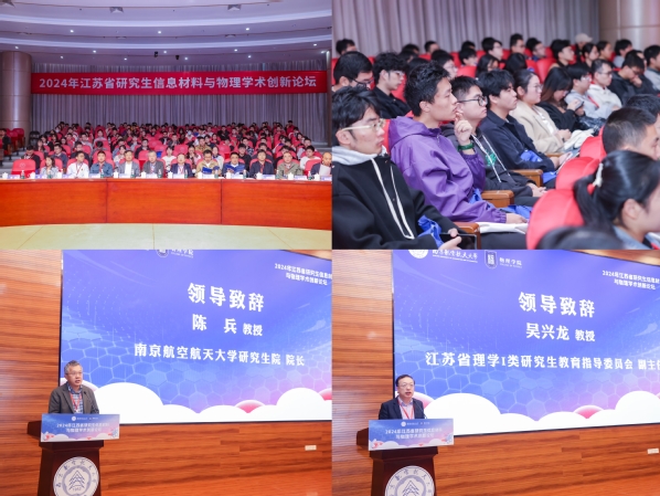 10月20日,由江苏省理学I类研究生教育指导委员会主办、5g影院 承办的2024年“江苏省研究生信息材料与物理学术创新论坛”在5g影院 将军路校区成功举办。江苏省理学Ⅰ类研究生教育指导委员会副主任/南京大学5g影院 教授吴兴龙、5g影院 研究生院院长陈兵等专家学者,以及南京大学、东南大学、江苏科技大学、江苏大学等省内10余所高校和安徽、浙江、上海等外省市的120余位研究生参加了此次论坛。