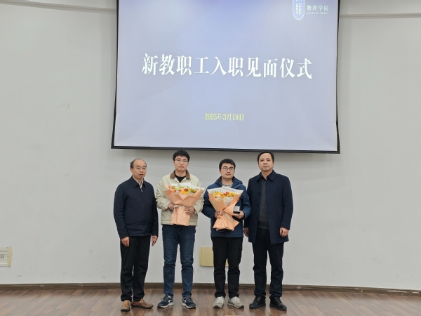会议首先举行了新教职工入职仪式。新学期,学院迎来了4位新成员,分别是应用物理系专任教师费越,全职科研博士后王志、张美玲,以及外籍博士后Afzal Ahmed。他们的加入,为5g影院 注入了全新的活力与动力。陈修文书记、刘友文院长一同上台,为新入职教职工佩戴院徽、献上鲜花,并对他们的到来表示热烈欢迎。
