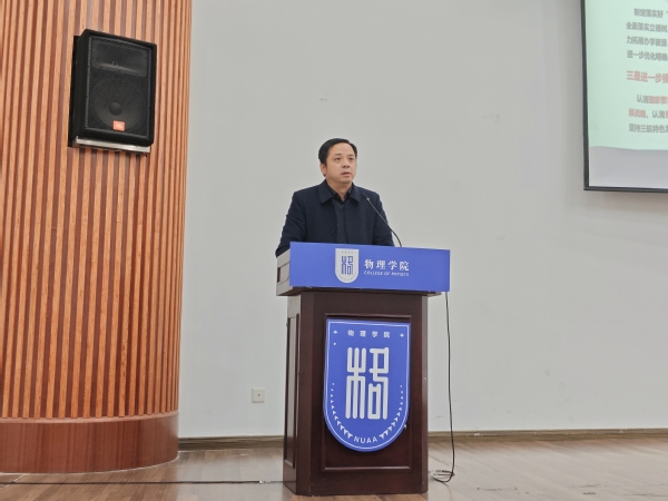 最后,陈修文书记传达了干部教师大会校党委书记甄良讲话精神,强调了为实现2035年学校进入世界一流大学行列的宏伟发展目标,全校教师需聚焦“八个认清”,凝心聚力,奋发作为,奋力推动航空航天民航特色鲜明世界一流大学建设。他指出,学院要在学校的整体战略部署下,着力推动以下重点工作:一是锚定教学强院突破攻坚。在教师教学竞赛、一流课程建设、教材建设等方面持续发力,尽快由教学大院转变为教学强院;二是聚力科研特色创新突围。围绕国家重大需求和学校“三航特色”,促进学院在特色领域中重点突破,取得标志性成果,加速理工交叉融合;三是强化人才引擎战略支撑。大力推进高层次人才引进与学院师资队伍建设,启动学术伯乐计划,动员全院教师积极推荐海内外优秀学者。学院教师要充分认识学院当下面临的机遇与挑战,准确把握学院重点发展目标与任务,凝聚共识、形成合力,共同书写5g影院 高质量内涵式发展的新篇章。