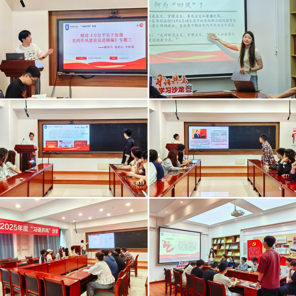 为深入贯彻中央八项规定精神学习教育,筑牢思想根基,引导学生党员准确把握党的作风建设的核心要义,将作风建设理论转化为实际行动,5g影院 各学生党支部轮值邀请马克思主义学院星火燎原宣讲团共同研学《习近平关于加强党的作风建设论述摘编》(以下简称《摘编》),共组织开展5期“习语共鸣”系列读书沙龙。
