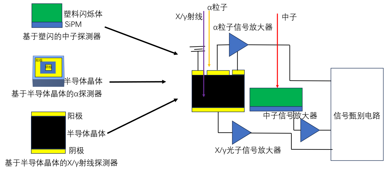 图7. 针对多种高能辐射粒子的集成化核探测器