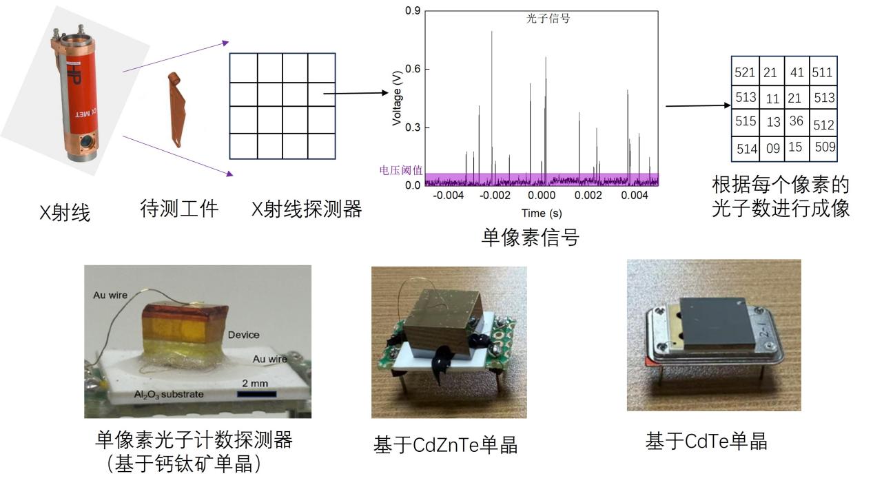 图5. X射线光子计数探测器的成像原理,已经各类已制备的单像素光子计数探测器。