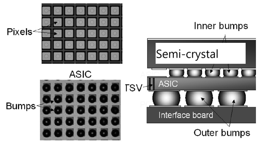 图6. X射线光子计数探测器的像素化的原理,封装办法。