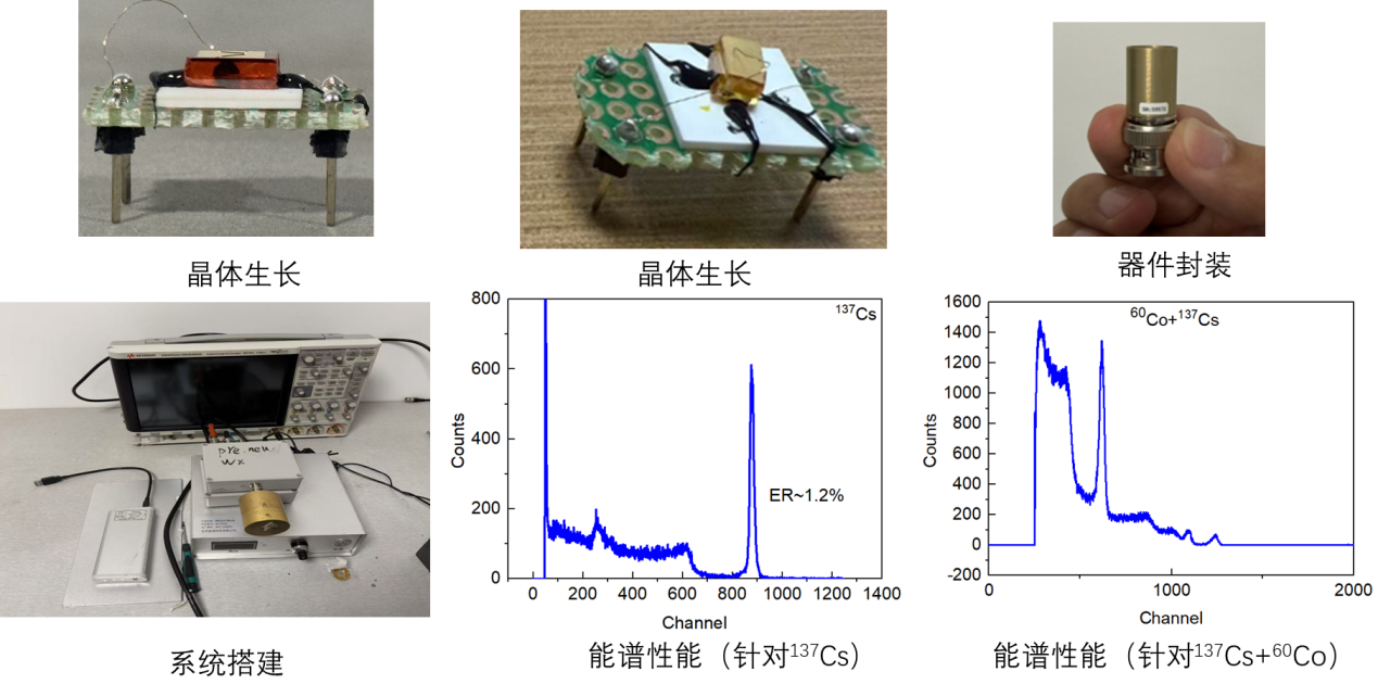 图4. 针对伽马射线能谱探测,研究团队从晶体生长,到器件封装,到系统搭建,以及最终能谱分辨能力