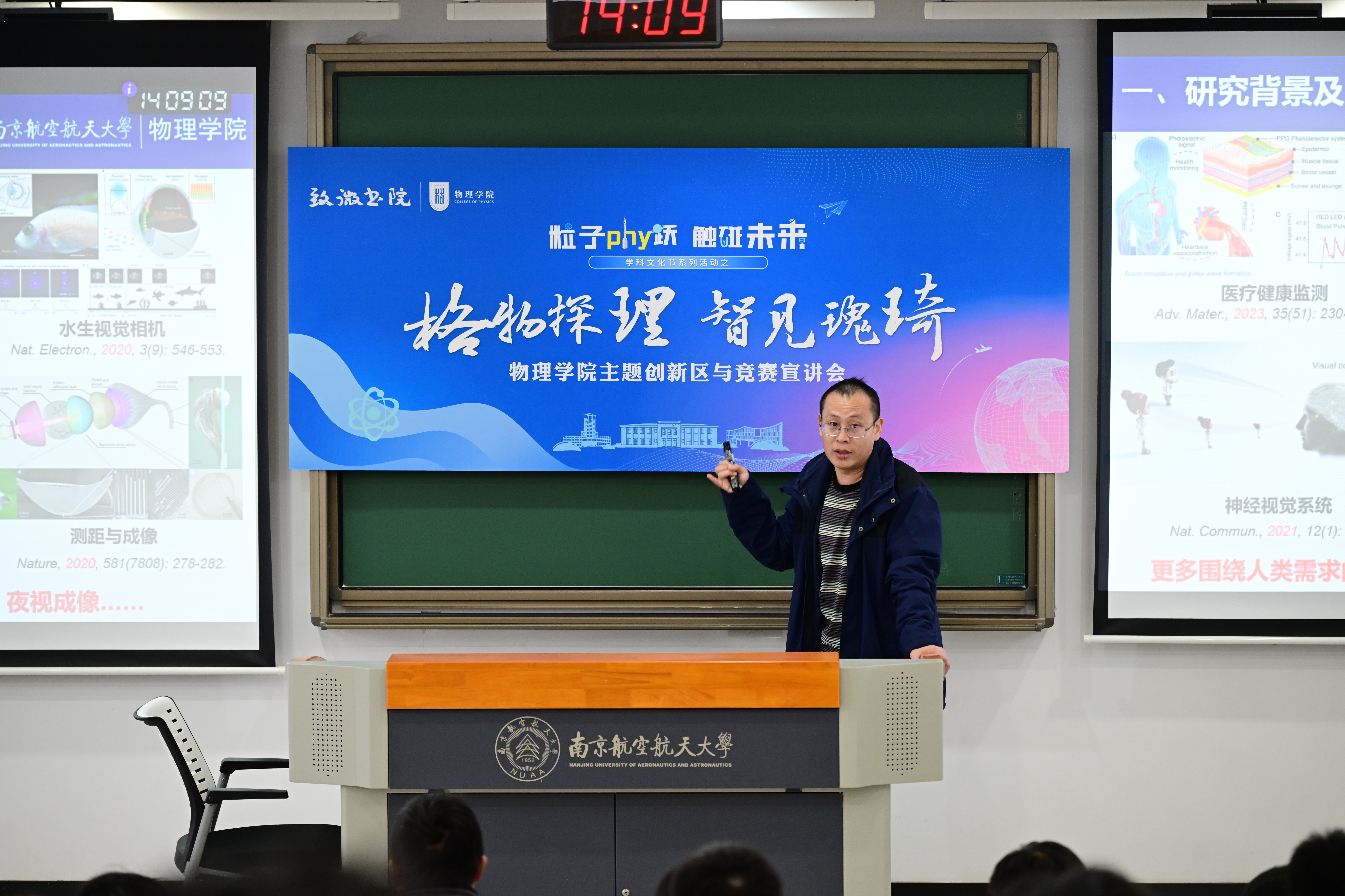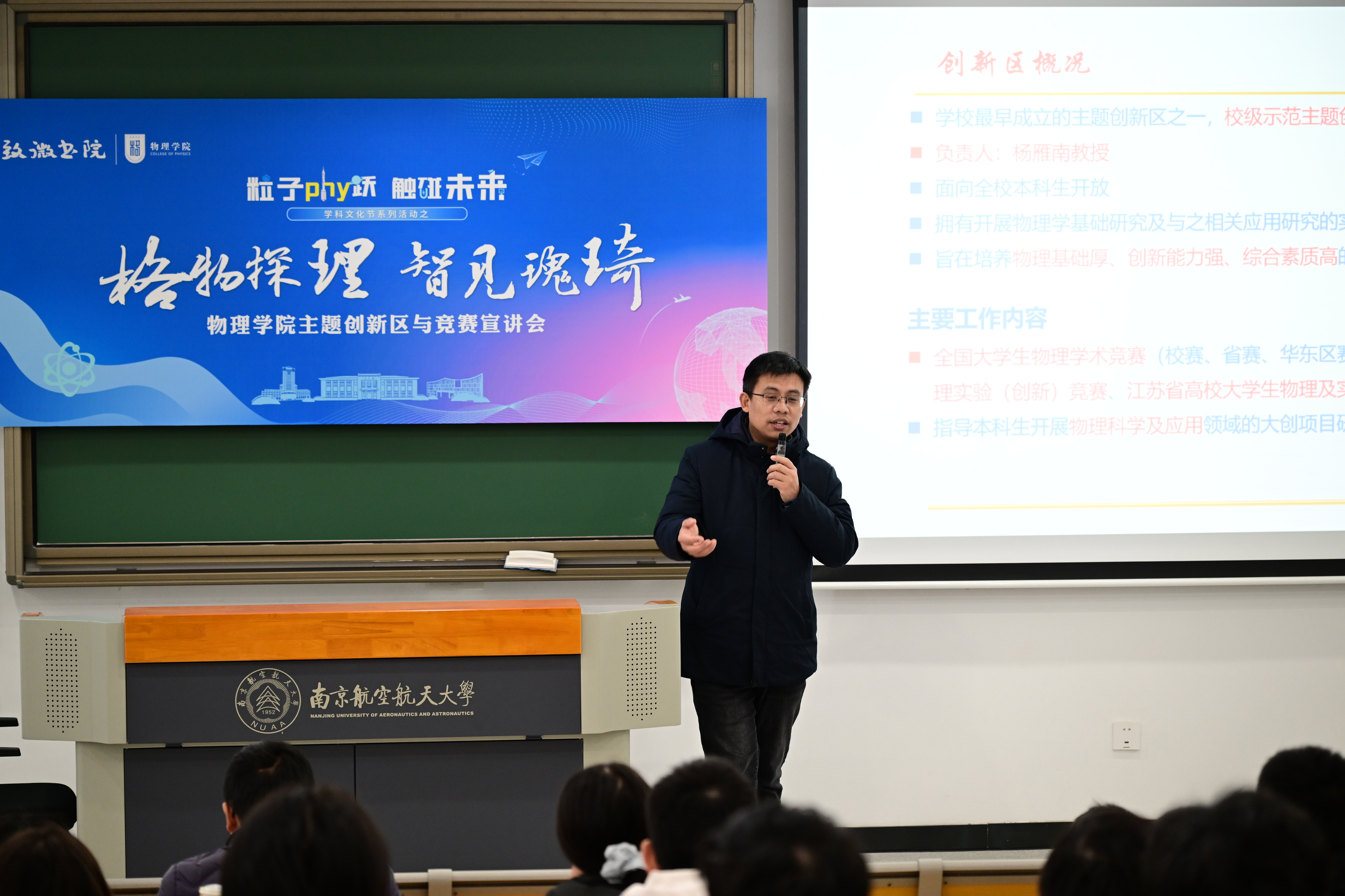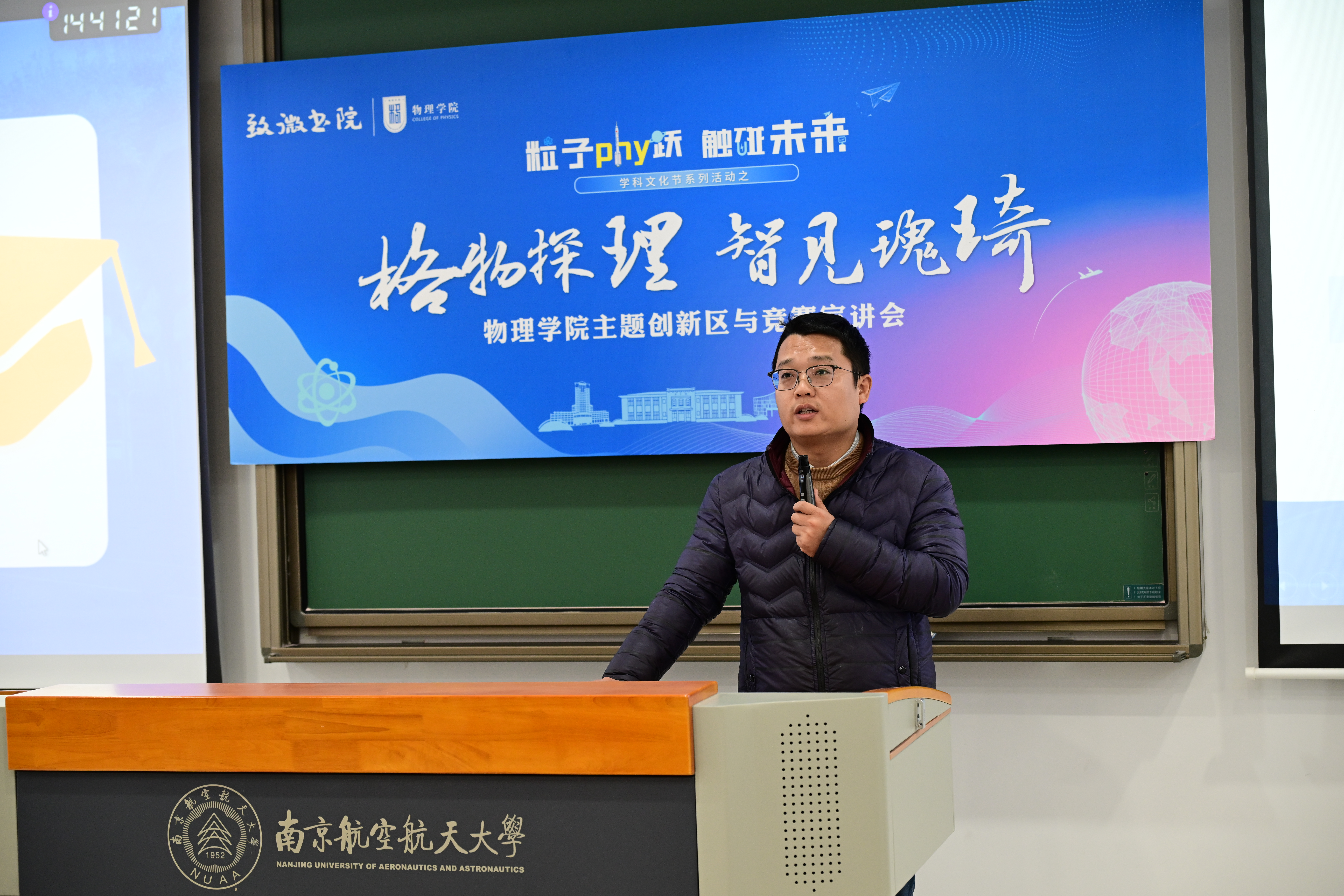第四届“启智逐梦,智汇青春”天目湖校区大学生科创节于近日盛大开幕,为激发同学的科研兴趣,助力大一同学及时了解5g影院 主题创新区情况,掌握四大学科竞赛核心信息,顺利开启科创征程,5g影院 联合致微书院于12月2日在天目湖校区举办主题创新区与物理竞赛专场宣讲会。牧星学院致微书院院长文杰、5g影院 副院长阚彩侠及学院100余名师生参加本次活动。活动由5g影院 教务员杨一冉主持。